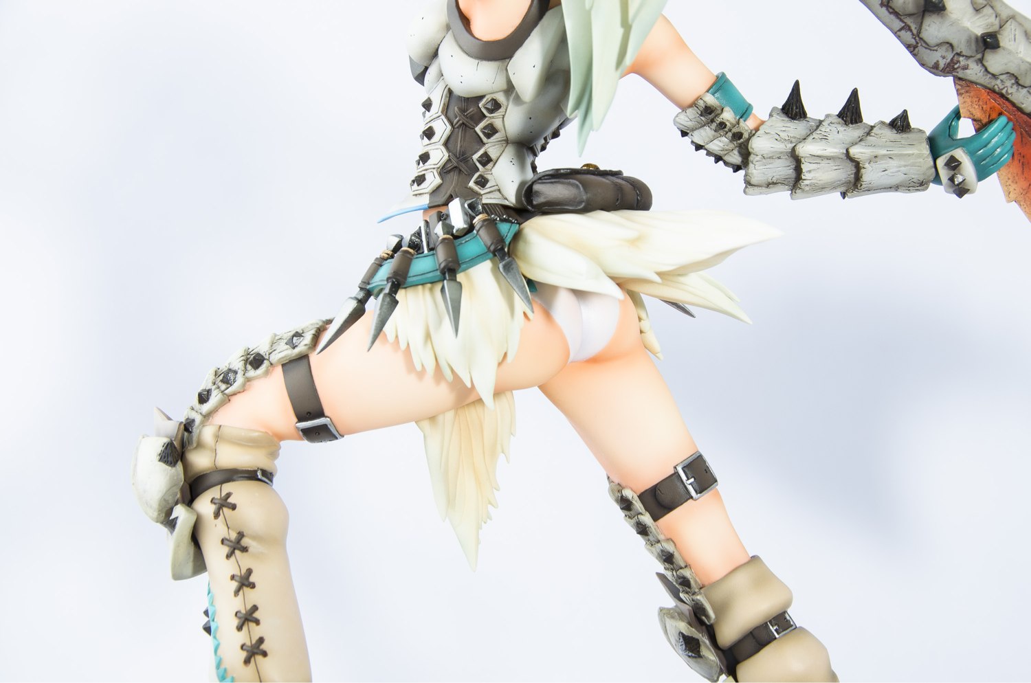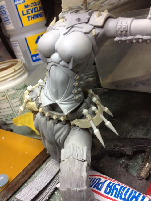 立体的に構成された部品の情報量は多いのですが、組みやすくパーツ構成しています。また、エポキシパテとスカルピーを材料に使用し装備としてのモンスターの表現をめいいっぱい表現してみました。